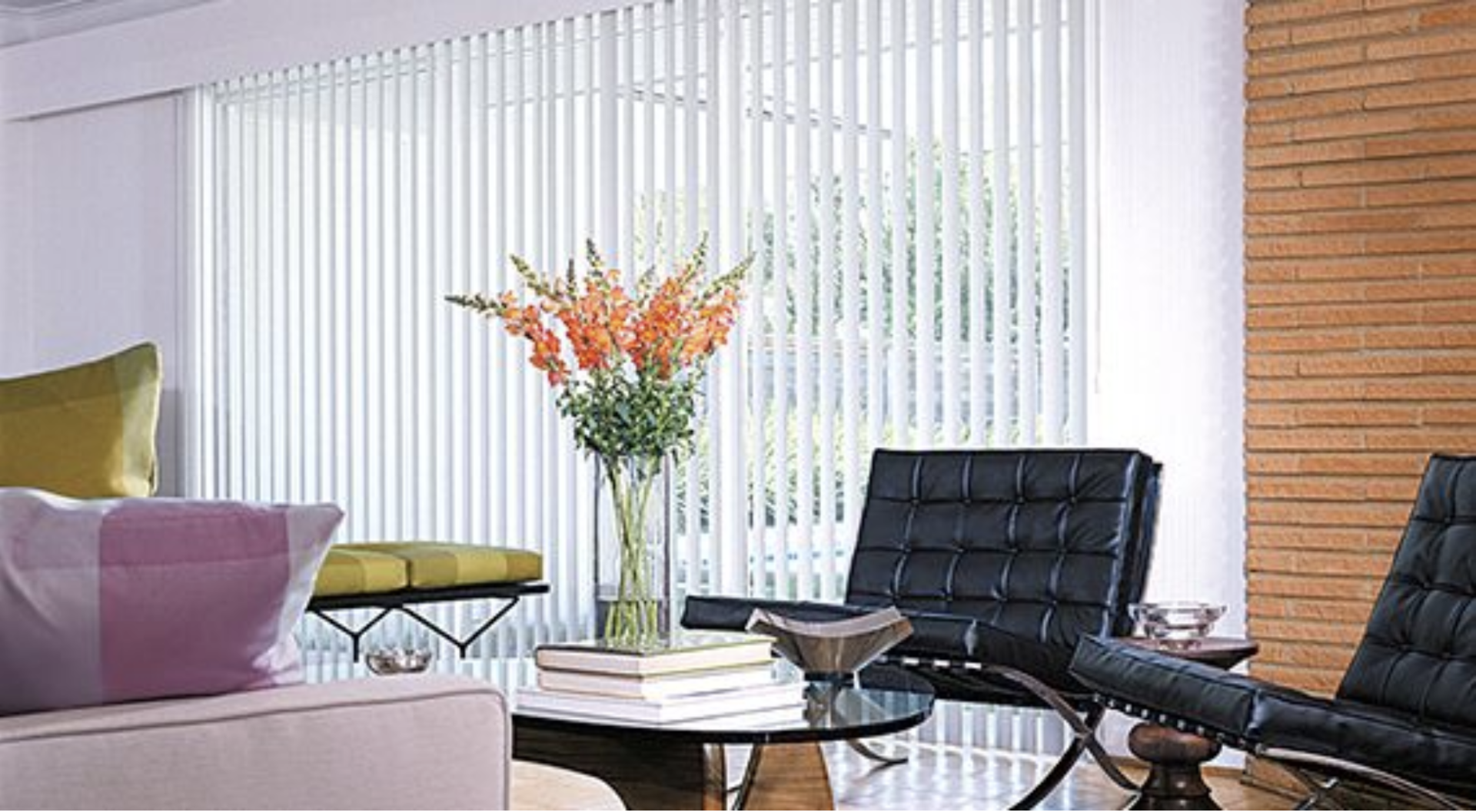 The ideal choice for sliding-glass doors or large windows, our custom vertical blinds are designed in a range of materials, including vinyl, fabric and aluminum​.